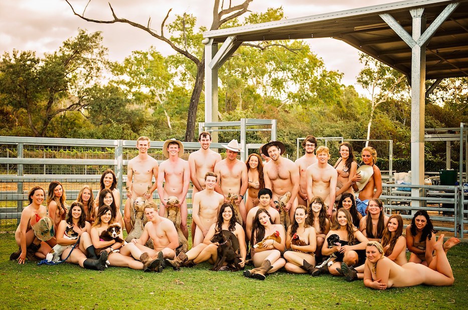 據英國《鏡報》報導,這群學生來自詹姆士庫克大學(James Cook University),他們全裸與馬兒、豬豬、野牛、天竺鼠等一起入鏡拍攝。發起人戴薇(Angela Davey)和伍德(Sylvia Wood)說,拍攝裸體月曆的靈感來自紐西蘭梅西大學(Massey University),該校的獸醫學系傳統,就是會製作全裸月曆。